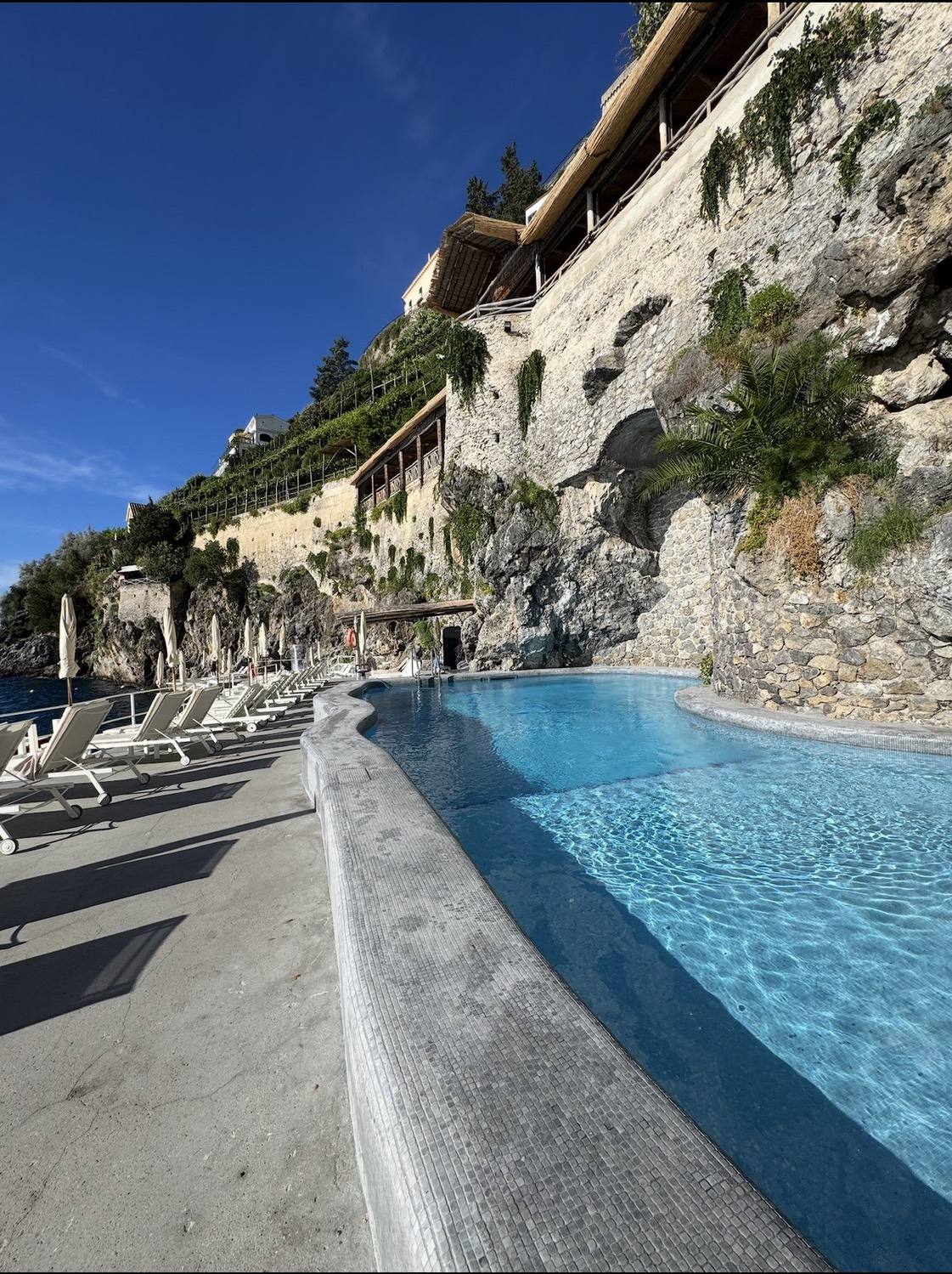 Carved into the cliffs above the Bay of Naples, Grand Hotel Capodimonte blends sweeping sea views with classic Mediterranean charm. Multiple cascading pools and lush terraces create an authentic Sorrentine escape.